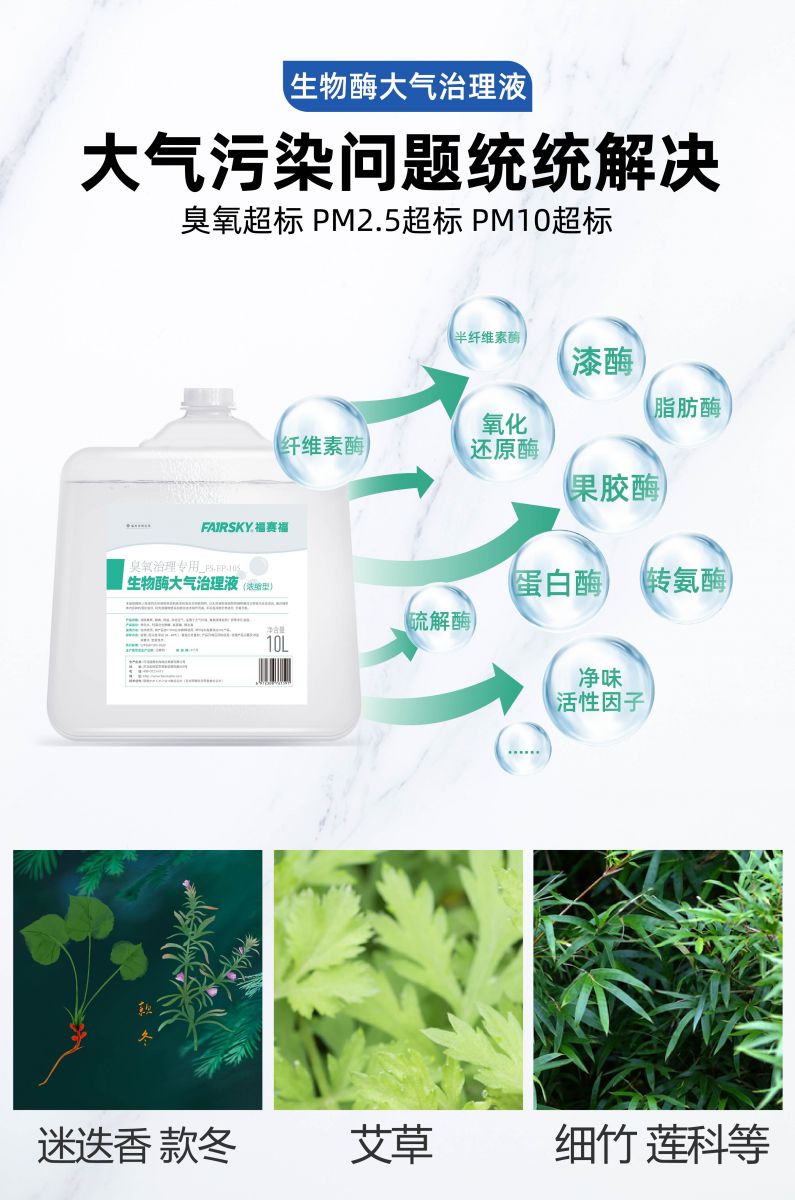 公司擁有生物酶大氣/工業臭氧治理劑、生物酶大氣PM2.5治理劑、生物酶大氣PM10治理劑、生物酶大氣/工業氮氧化物治理劑等,大氣/工業空氣污染治理產品,適用于大氣站點環境治理、工業場景污染物超標治理,免費提供技術方案,歡迎致電。