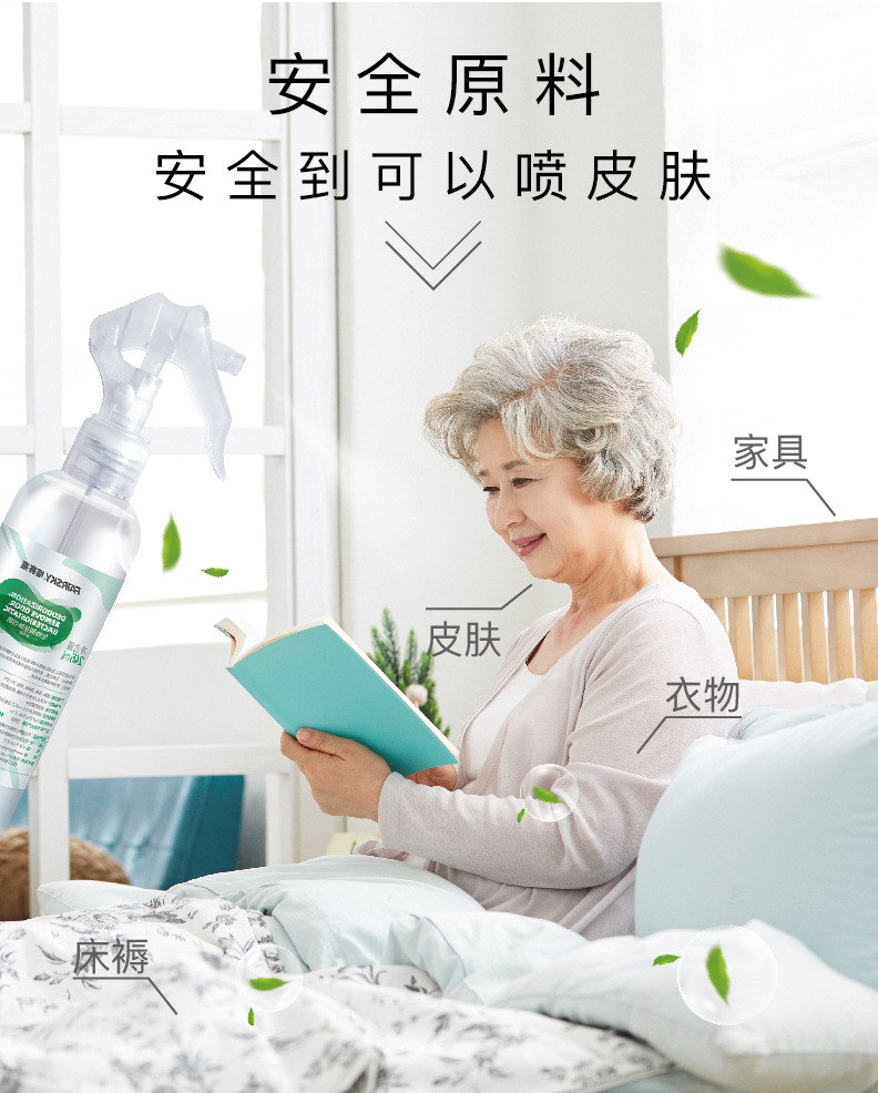 使用方法:1.適用體表、房間、衣物等,直接噴霧使用,可接觸皮膚無刺激;